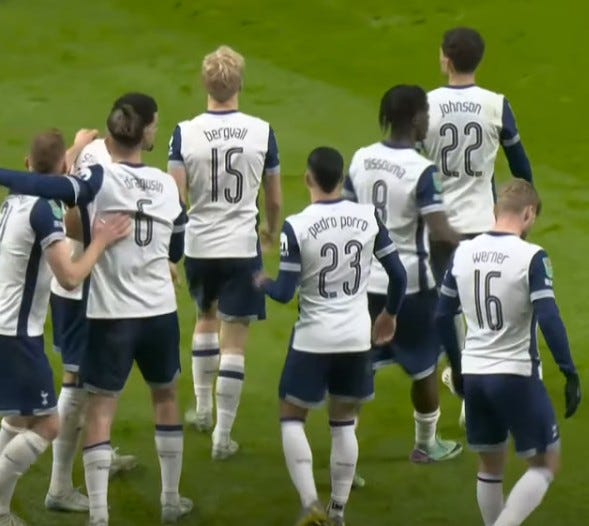 And next time Djed Spence has to empty his pockets at the airport, he may well drop Mo Salah into the tray before the x-ray machine. I may be overstating his case, but I don’t care because it wasn’t so long ago we were wondering if he’d ever be serviceable cover to Pedro Porro on the right, and there he was on Thursday hanging right with the leading scorer on the world’s best team this season. I knew Spence had something to offer on the attacking end—especially in Ange’s system—but he’s showing himself to be a capable and versatile defender. I especially like how he uses his frame, both offensively and defensively, to own his space. After not seeing any real minutes for Spurs for so long following his arrival as a “club signing” under Conte, Spence’s ascent has been so rapid that it seems he’s beyond the “redemption arc” narrative and has established himself as an asset going forward.