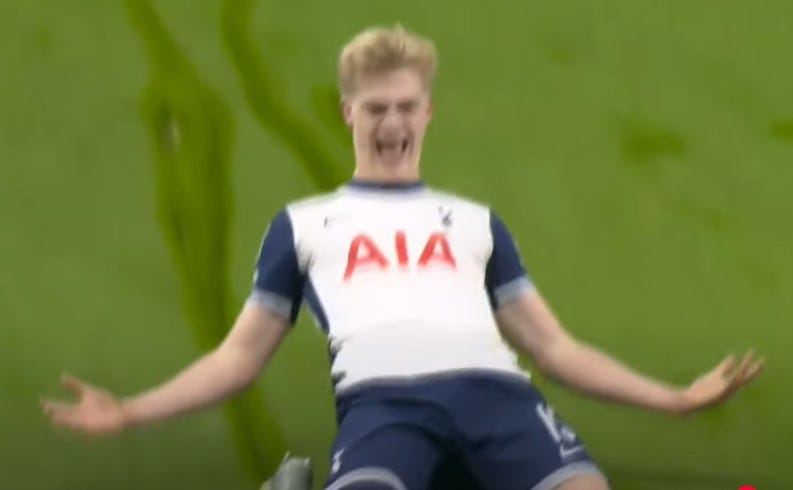 At the 86’ mark, just minutes after Dom Solanke had a goal disallowed for being offside by a toe, Big Dom showed one of the multiple ways in which he is a Problem for defenders. He simply outran/outmuscled his way onto a speculative Porro ball into the box and smartly spotted Bergvall’s runner. As Lucas took off for the box, he was akin to a high school senior stepping onto the platform at graduation. When he received Solanke’s pass, he took his diploma in hand, showing maturity beyond his years by calmly, cleanly curving one inside the right post—a brilliant strike. I’d gone out of the room momentarily and heard the goal on SXM. I have to see if I can find the audio of that call somewhere, as it was fittingly euphoric to the moment. Meanwhile, here’s an analysis from the Zekko Football account of Bergvall’s sparkling performance.