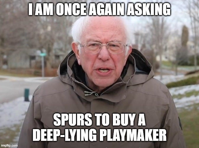 The conversation around Bissouma has admittedly become controversial, but he lost me forever when he got himself suspended for the Super Cup match—which left us trying to close out a huge upset of PSG with 19-year-old Archie Gray. Yves has had various issues with our last three managers now, and if you can’t show up on time to team functions, I don’t have time for you.